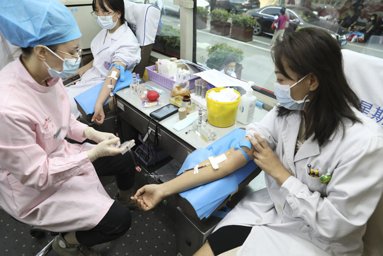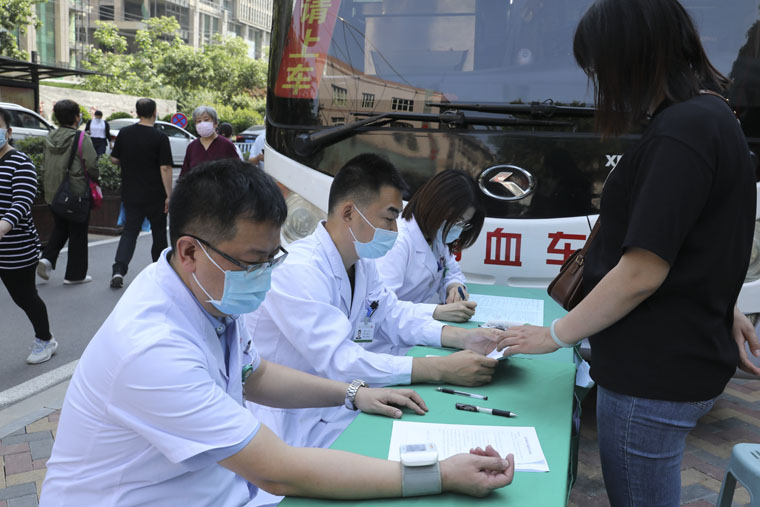 烈日炎炎擋不住大家的獻血熱情,按照疫情防控要求,職工們分時段、分批次來到獻血車,進行填表登記、體檢征詢、血液初篩、挽袖獻血。這里有多次獻血的“老將”,也有初次獻血的“新兵”,有些醫務工作者剛下夜班就趕來,有的在繁忙的工作中擠出時間來獻血,之后步履匆匆回到崗位……一幅幅溫暖感人的畫面定格在獻血現場。