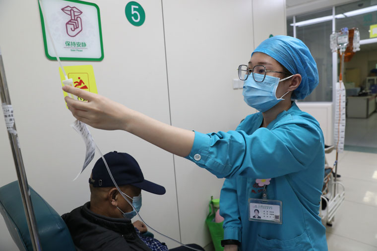 科室定期組織新藥物、新技術的學習和培訓,人人不落,人人掌握,并且讓患者和家屬共同參與查對。落實新型抗腫瘤藥物“雙通道”的管理方法,最大限度為患者提供便利。在新冠疫情的背景下,科室在滿足患者新型抗腫瘤藥物輸注的同時,按照院感要求第一時間調整輸液區的布局,科學做好防疫。