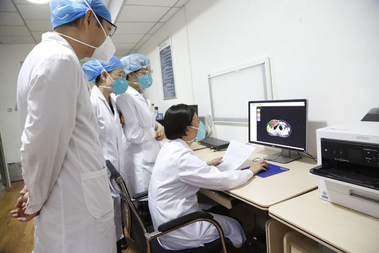 “進行規范化腫瘤診治,讓更多的患者在第一時間得到最佳治療方案,是刻不容緩的任務”。為此,樊曉妹和科室同仁根據現狀,迅速確立了“手把手帶教、一對一帶徒”的援疆目標,轉“輸血”為“造血”,通過開展腫瘤靶區勾畫、教學查房、學術講座、病例討論等多種方式,使大家更快掌握診療規范及基本技能操作。巴州人民醫院放療科醫生范曉宇是樊曉妹的徒弟,從基本的婦科檢查,看CT核磁片子,到放療靶區勾畫,樊曉妹手把手教導,范曉宇認真學習、逐步成長,成為能夠獨當一面的合格醫生。