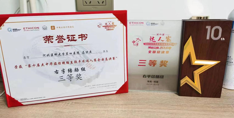 在“第十屆大中華腔鏡結直腸手術達人賽”中,我院外二科丁源一、馬洪慶兩位主治醫師順利通過河北省內海選、太行賽區決賽、北中國區決賽,作為僅有的兩位獲得一等獎的選手,代表北中國區參加全國總決賽。在決賽中,兩位青年醫師以全程英文講解展示了典型手術視頻案例,得到鄭民華教授、蘭平教授等來自全國結直腸外科手術領域知名專家的一致好評,分別獲得結腸組三等獎的好成績,彰顯了外二科醫師扎實的臨床基礎知識和精細的外科操作技巧。