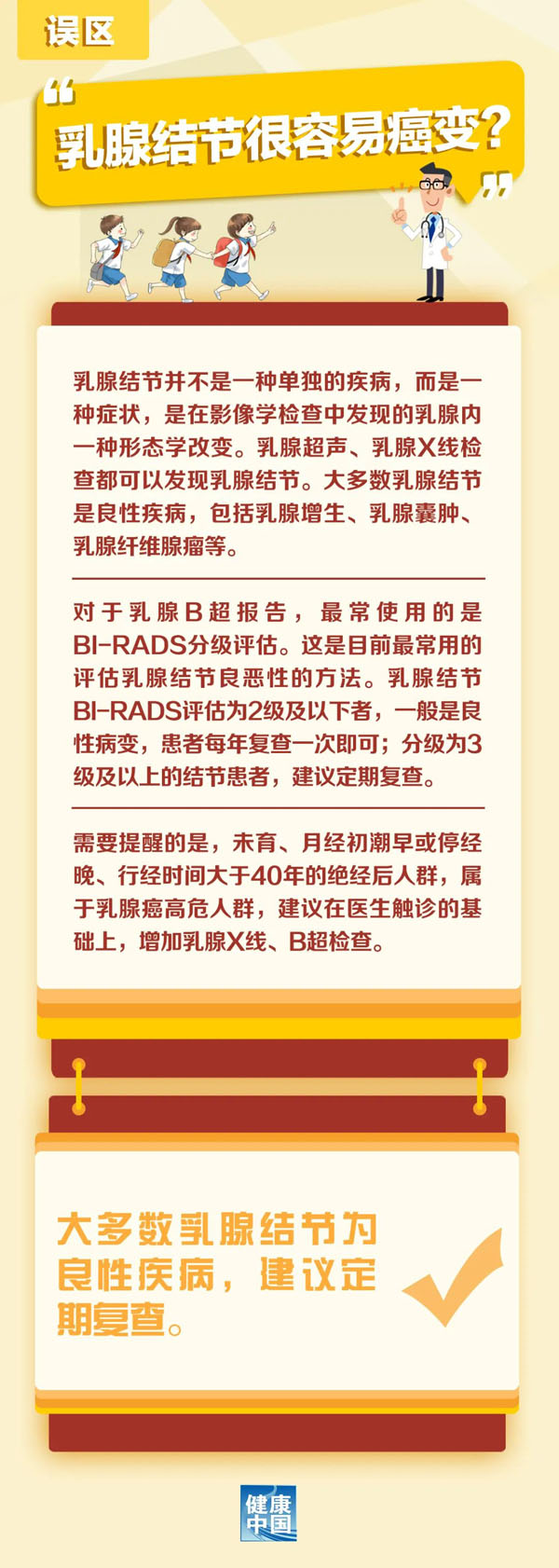 很多人對于乳腺結節并不了解,以為乳腺結節等于乳腺癌。當體檢查出乳腺結節時,馬上就陷入了慌亂,那么乳腺結節是癌癥嗎?是否會威脅女性健康?這一期讓我們關注有關乳腺結節的健康謠言!