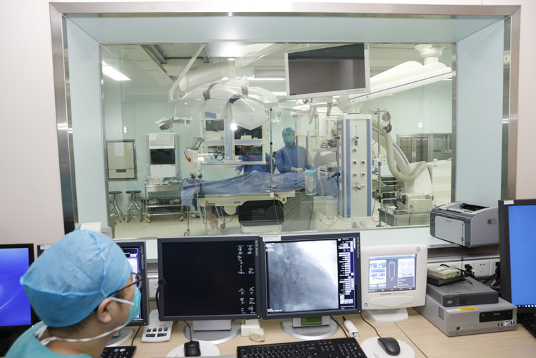 DSA手術室,全稱數字減影血管造影復合手術室,又稱雜交手術室,是指將DSA系統直接安裝在手術室內,不僅能進行外科手術治療,也可進行血管腔內介入操作的場所。數字一體化DSA手術室主要由手術間、控制室和機房組成。手術間內配置齊全,包含CT機、一體化及信息化手術室配套設施等,可通過集中控制屏一鍵控制。通過信息集成控制系統對手術室內的CT機、腔鏡影像、手術燈、電外科設備、手術床等進行控制,減少誤操作,提高安全性;對手術室內音視頻集中管理,實現術中高清音視頻的示教、切換、錄制、點播等功能,實現與院內視頻會議系統無縫對接;同時與院內各個系統實現無縫對接,實現各類信息的隨時顯示,如全院會議直播、網絡會診等。在DSA手術室,多次上演“生死時速”,諸多患者重獲新生。