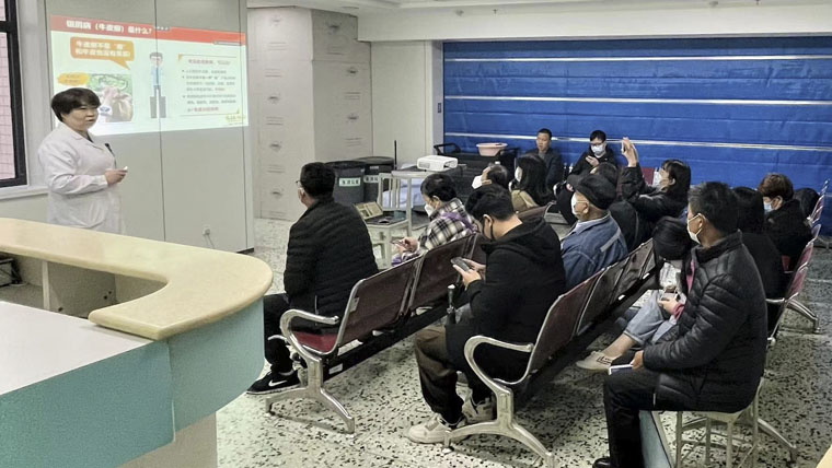 活動中,張燕主任在皮膚科候診區給前來咨詢的患者進行“了解銀屑病和銀屑病日常治護”科普講座,詳細介紹不同人群銀屑病治療方案的選擇,包括兒童、孕產婦、合并腫瘤、結核、肝炎以及腎功能不全等患者。她介紹了基礎治療包括口服外用藥物、窄譜紫外線、PUVA等以及當前比較熱門的生物制劑包括IL-17(司庫其尤單抗、依珠奇單抗等)、IL-12/23抑制劑烏司奴單抗、TNF-a抑制劑(依那西普、英夫利西單抗、阿達木單抗等),以及新型口服藥物JAK抑制劑托法替尼、PDE-4抑制劑阿普斯特等,幫助銀屑病患者得到更精準的治療。