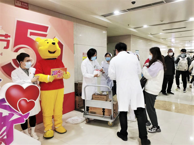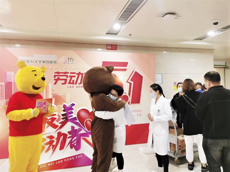 活動中,工會的兩位職工穿上布朗熊和維尼熊的人偶,向職工們“溫暖的擁抱”、贈送護手霜,并向大家道一聲“辛苦了”!很多職工表示,通過活動收獲了來自醫院的關懷和溫暖,勞動最光榮,奮斗最幸福,新時代更要立足崗位、腳踏實地,用辛勤勞動創造更加美好的明天。