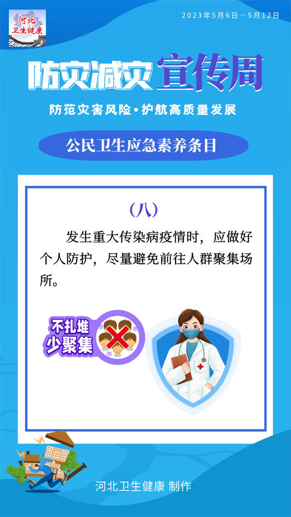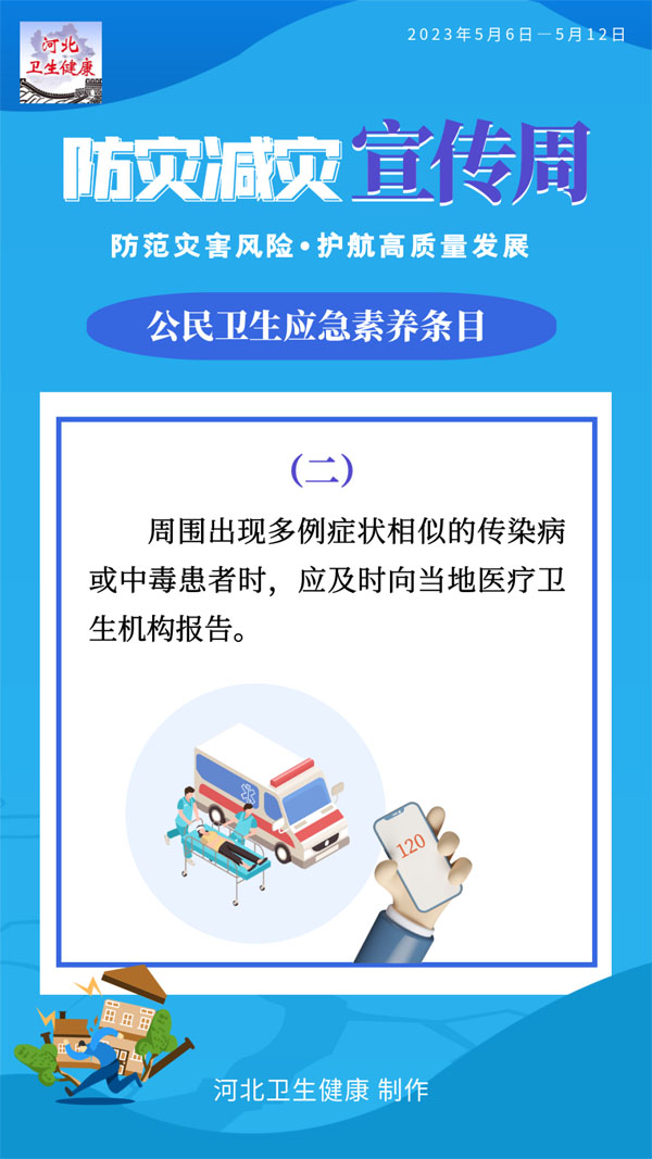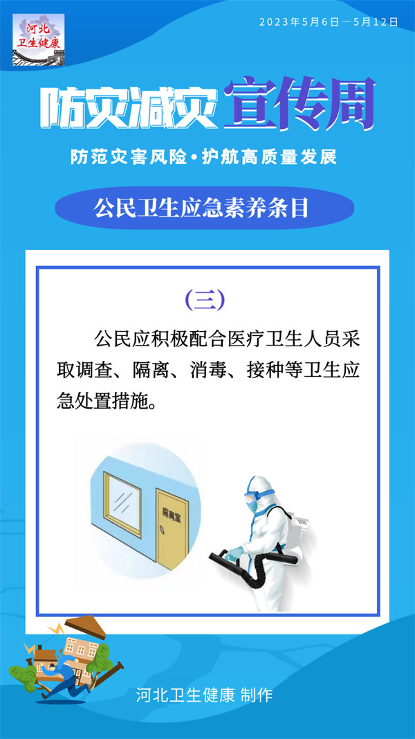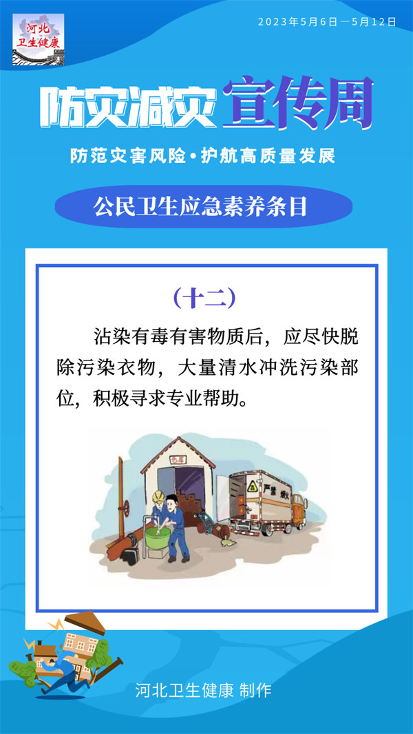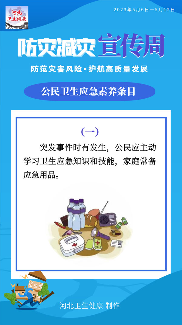 為普及衛生應急知識和基本技能,提升公民有效防范應對各類突發事件的意識和能力,國家衛生健康委員會應急辦公室編制了公民衛生應急素養條目。條目共12條,涉及突發公共衛生事件應對,突發事件緊急醫學救援、中毒及核輻射應急處置等基本知識和要求。