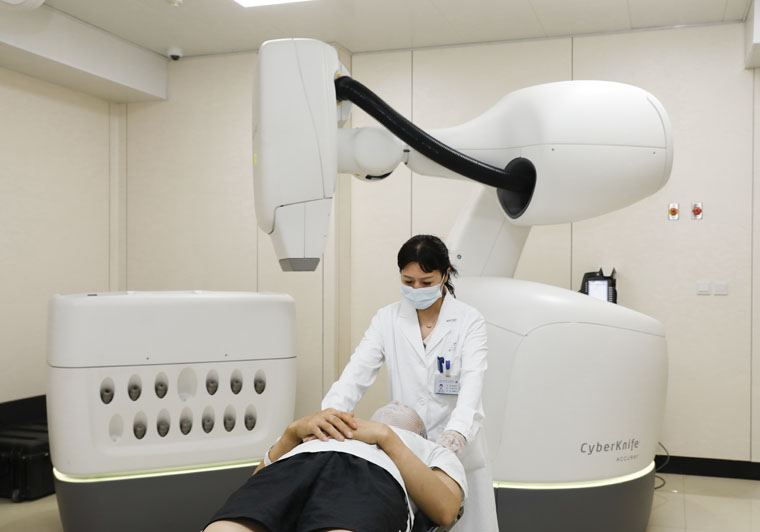 我院第六代射波刀已成功治療腦轉移瘤、骨轉移瘤、肺癌、肺轉移瘤、肝癌、腹盆腔轉移瘤等多個病種,標志著我院精準立體定向放射治療技術邁入全國領先水平行列。放療科將繼續發揮技術優勢,充分發揮射波刀療程短、劑量率高、治療范圍廣、影像引導速度快和運動器官動態追蹤能力強等優勢,進一步提高醫療服務質量,將“人民至上、生命至上”落實到實際行動中。
