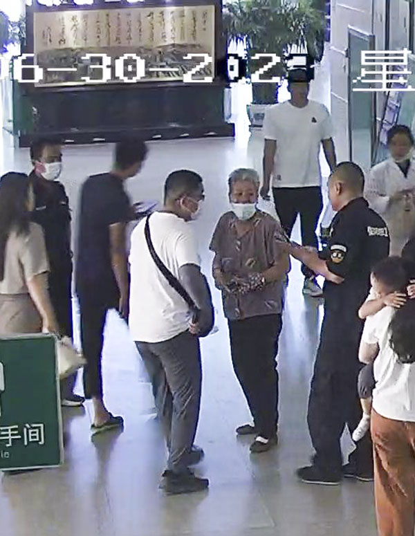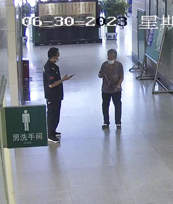 “不好意思,我的母親剛剛走失了,她是聾啞人,請幫我找找!”面對就診家屬趙先生的緊急求助,東院區保衛處人員祁豪豪、武江仔細問老人容貌及衣著特征,在留好趙先生的聯系方式后分頭行動。他們一邊在中控室查看監控錄像,一邊在可能走失的地區進行搜尋。約10分鐘后,監控中發現二樓電梯口有著裝相似老人,保衛處立即通知巡查人員前去詢問,經確認是剛剛走失人員。趙先生喜極而泣,忙向我院職工連聲道謝。