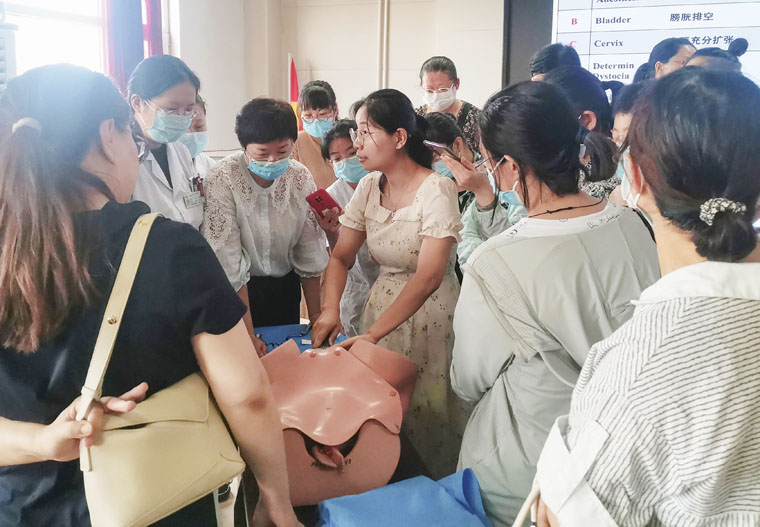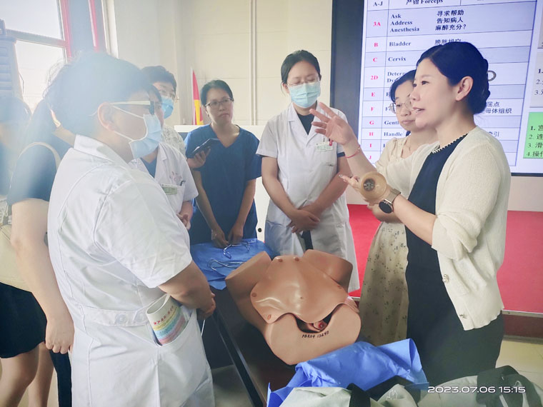 隨著國家生育政策的開放、人民生活水平的提升,高齡、肥胖女性呈增加趨勢,增加了孕產婦的妊娠風險。楊志芬副主任就目前產科發展現狀發展理念和模式以及引起孕產婦死亡主要原因之一的妊娠期靜脈血栓栓塞癥進行深入講解利用標準助記符(Check-list)、孕產婦急救的集束化管理(4Rs Bundle)等幫助學員理解記憶,有利于提升醫護人員的綜合診療能力和團隊協作意識。東院產科劉廣譜、鄭芮醫師辛集市第一醫院婦產科王弄主任分別就產時胎兒監護、妊娠期高血糖、產后出血進行理論授課。陰道助產及肩難產實操培訓環節我院專家通過口訣式記憶方法幫助培訓人員規范牢記助產流程、提升助產能力確保母嬰安全培訓現場求學“火爆”,反響強烈。