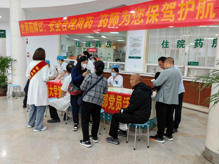今年9月25日是第十五個世界藥師日,主題為“藥學:促進衛生系統健康發展”。當日上午,藥學部在兩院區門診大廳舉辦“世界藥師日”宣教義診活動,由多名藥師組成專家團隊,為來院患者及家屬提供專業的用藥知識和指導,解答用藥方面的各種疑問。針對今年世界藥師日主題,現場發放合理用藥知識宣傳頁,同時也貼心地提供量血壓等服務,受到患者一致好評。本次活動也是第二十七、五十四黨支部的一次主題黨日活動。
