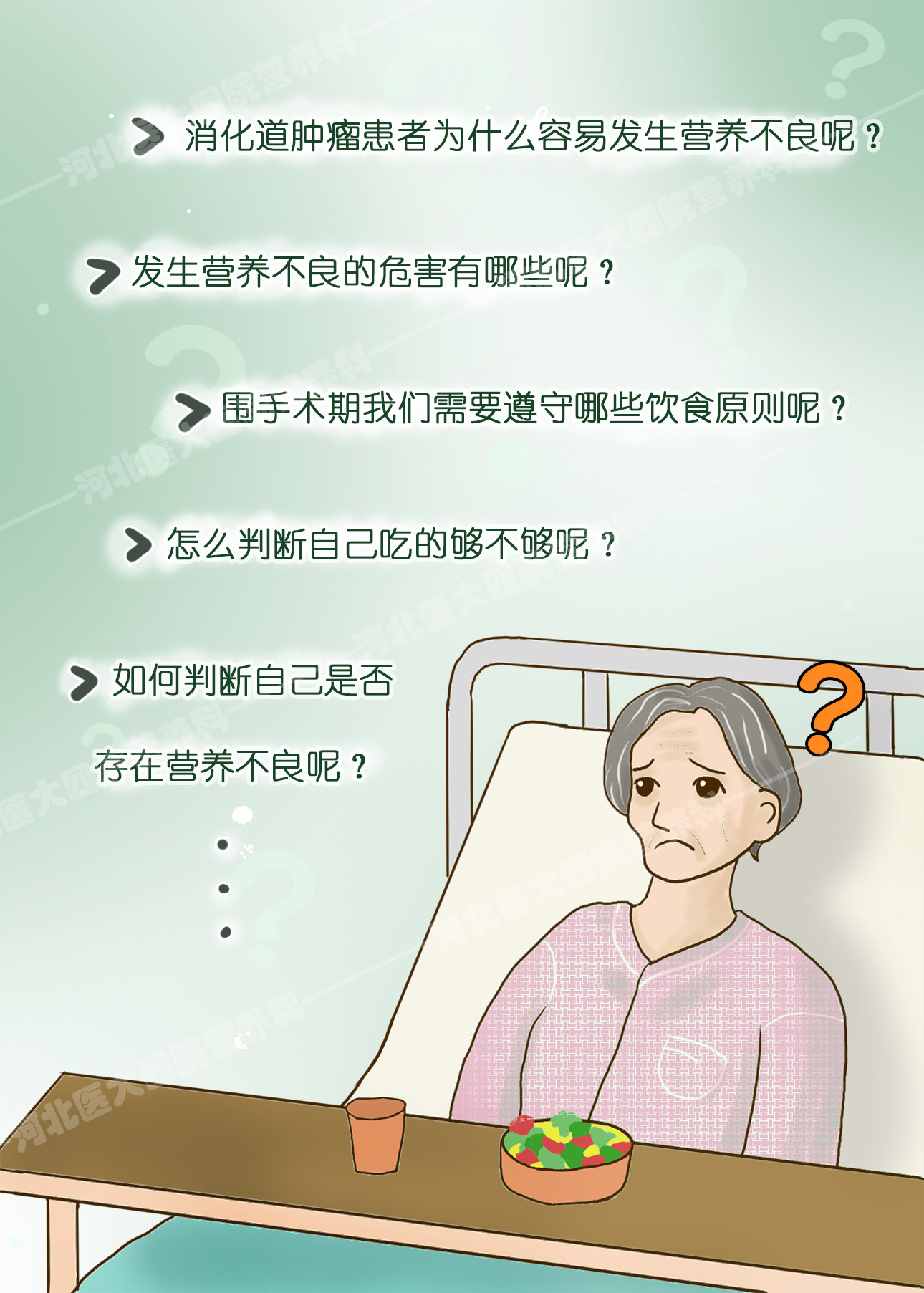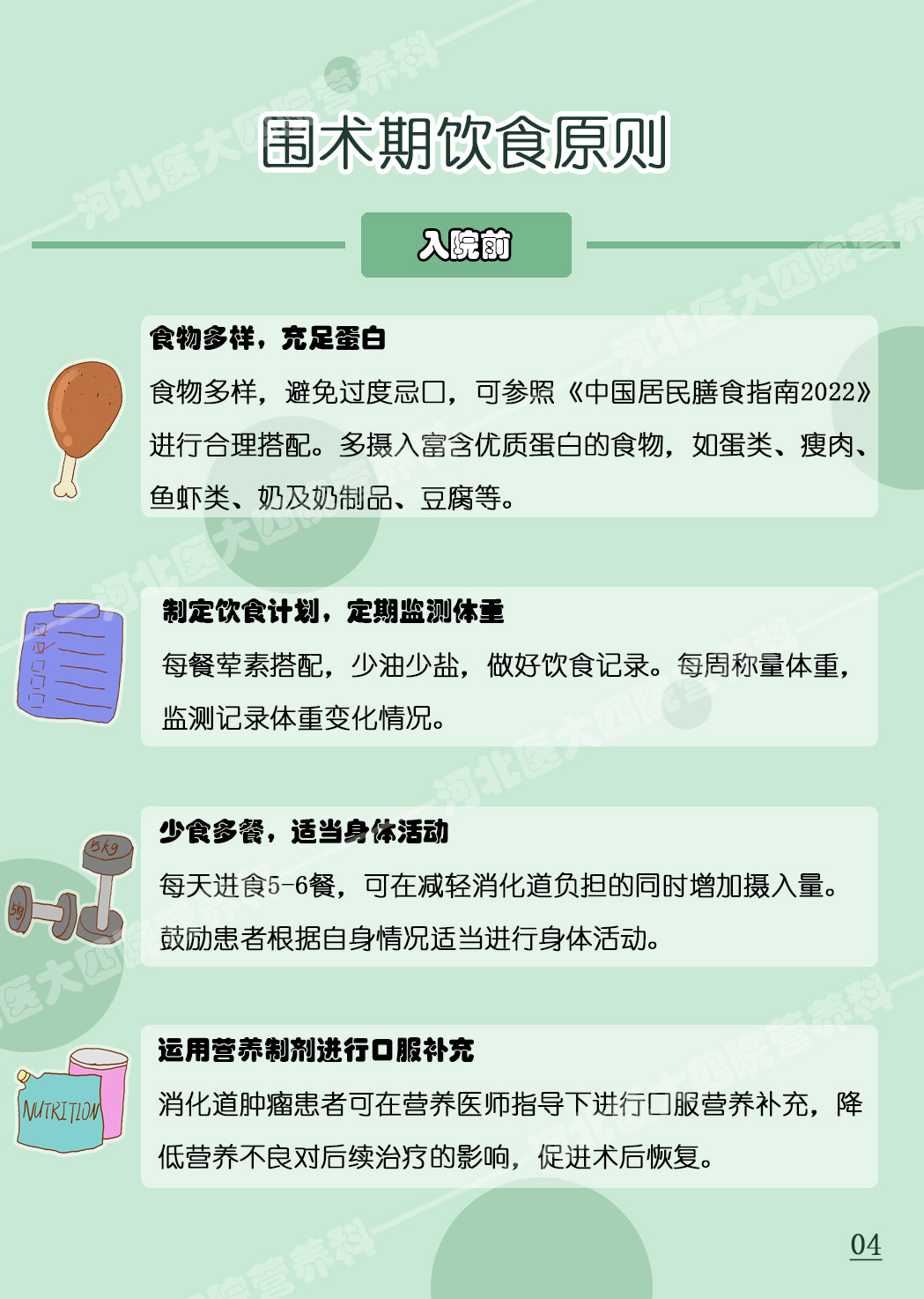 作品《圍手術期你吃對了嗎——消化道腫瘤篇》通過生動的科學的系列圖片介紹了消化道腫瘤患者在圍術期的飲食原則及注意事項。