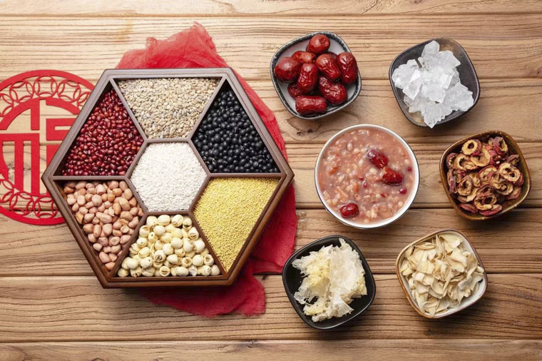 臘八粥不僅好吃,從營養的角度看還非常健康。中國居民膳食指南中第一條就是:食物多樣,合理搭配,臘八粥非常符合這一條,它的材料決定了臘八粥的美味和營養。臘八粥的食材通常由稻米、小米、糯米、薏米、紅豆、綠豆、紅棗、花生、葡萄干、桂圓肉、枸杞、黑芝麻、百合、蓮子等組成,其中既有谷類、豆類、又有堅果、干果,且谷類、豆類混合搭配能起到蛋白質互補作用,提高了飲食營養價值。