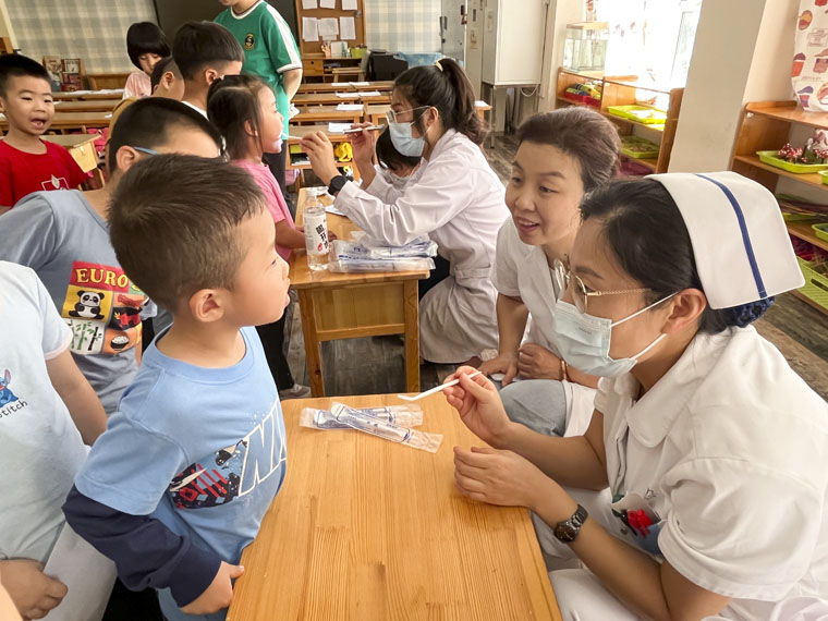團隊不忘初心,弘揚“博愛”精神,將宣傳口腔保健知識為己任,積極進社區、入校園,每年開展系列義診宣教活動。在活動現場,護理人員義務為群眾檢查口腔、示范正確刷牙方法、教孩子們唱刷牙歌、發放愛牙宣傳資料等,運用生動實際的語言,將口腔保健知識與生活細微之處緊密結合,有效提高了大眾口腔預防保健意識,幫助越來越多的群眾做到早預防、早診斷、早治療,讓口腔疾病遠離健康生活。