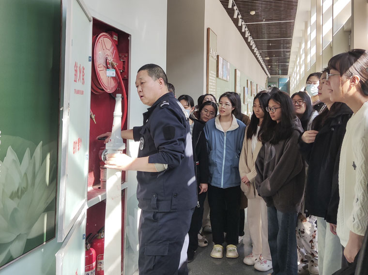 為提高學生消防安全意識和逃生自救能力,科室邀請保衛處王海兵、李建東、張衛彬和高燕偉開展消防知識講解和疏散逃生演習訓練,并示范了消防水帶、滅火器等常用消防設施的使用方法,以及發生火災時的逃生自救方法。培訓中,保衛處人員通過模擬宿舍區火情,指導學生進行疏散演練,每名學生還拿起滅火器實地體驗了滅火操作,領會“提、拔、握、壓”的操作流程。