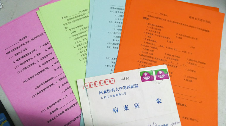 隨訪又稱隨診,即追訪性的診療服務,是對患者病情的追蹤及健康指導。從建院起,我院病案室便建立了食管癌和賁門癌出院患者常規隨訪體系,病案室承擔常規隨訪工作,現保存最早的隨訪卡片可追溯到1957年。我院至今累計完成食管癌手術4萬余例,達到國內先進水平,為世界單醫療中心之最,隨訪工作作為提高醫療質量、彰顯人文關懷的重要工作之一,也在持續進行中。