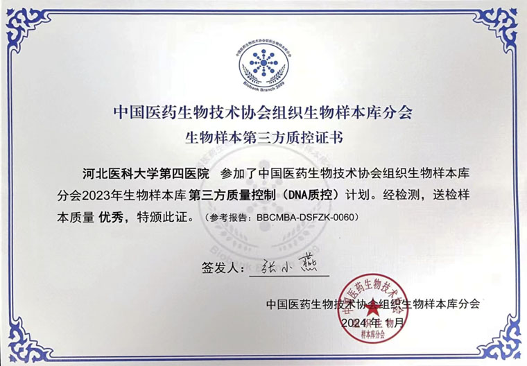 近日,我院生物標本庫以優異的成績通過了在全國各機構生物樣本庫開展的“生物樣本第三方質控項目”,是目前河北省唯一一家參加評定并通過的生物樣本庫,其中DNA質控結果為優秀。該項目由中國醫藥生物技術協會組織生物樣本庫分會(BBCMBA)開展。此次評定結果進一步體現了我院高質量保存樣本的能力,也為進一步規范化建設奠定了更加堅實的基礎。