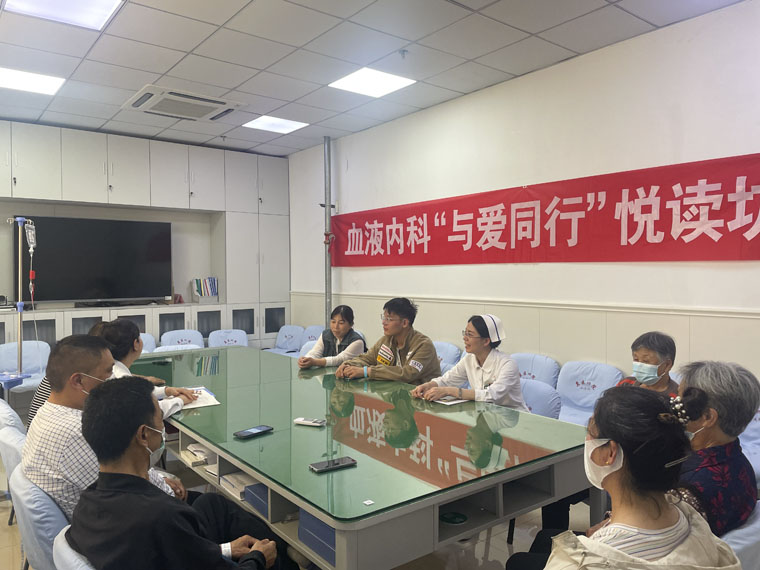 腫瘤患者在整個治療期間或許會出現焦慮、擔憂、恐懼等心理情況,為幫助血液腫瘤患者走出精神“谷底”,我院血液內科定期舉行“悅讀坊”活動,通過閱讀交流等方式傳遞人文關懷和正能量,幫助患者緩解情緒,療愈身心。截至目前,血液內科已舉辦此項活動19期,累計參與人數120余人,收獲良好反響。