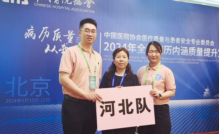 5月10-13日,由中國醫院協會醫療質量與患者安全專業委員會主辦的2024年首屆全國病歷內涵質量提升宣貫活動暨全國病歷書寫技能大賽及病歷質控知識大賽在北京舉行。在何宏濤副院長的支持與指導下,醫務處李杰處長積極籌劃,按照比賽規定從去年河北省推薦的“百佳病案”中抽選外三科夏宇翔、ICU王婧園醫師參加比賽,由病案室李書梅主任帶隊。他們聯合河北省多家醫院共14名隊員,組成河北省代表隊,與全國其他30個省份近300所醫院同仁同臺競技,經過初賽、復賽的激烈競爭,12個省隊進入決賽,最終河北省代表隊獲得病歷質控知識大賽團體賽第一名,夏宇翔獲得個人賽第三名。