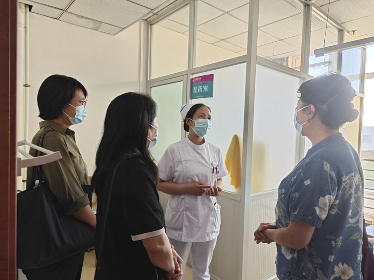 在培訓會上,專家團隊從PICC的植入、拔除與維護等方面進行授課。我院血液內科護士段亦嬌詳細講解了PICC的植入與拔除流程,重點突出了其中的難點和關鍵環節。乳腺中心護士李月鋒對PICC維護流程進行了規范化培訓。在討論答疑環節,康琳主任護師、王建新護士長、段亦嬌護士和李月鋒護士耐心解答并指導了望都縣醫院在靜脈治療中遇到的難題。隨后,團隊專家在望都縣腫瘤內科護士長劉麗的引導下開展臨床實地調研,并根據望都縣的臨床現狀,提出了靜脈通路開展與實施的合理化建議,受到了廣泛稱贊。