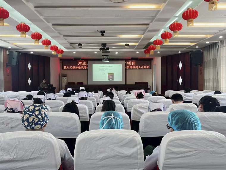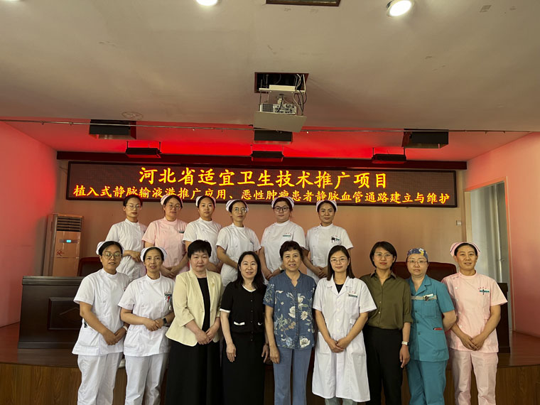 為進一步加強落實《河北省“適宜衛生技術推廣示范縣”建設方案(2023—2025)》要求,提高基層醫院醫療、護理水平,近日,在河北省護理學會首席專家康琳主任和乳腺中心護士長王建新帶領下,我院靜脈治療護理專家團隊赴保定市望都縣醫院開展“植入式靜脈輸液港推廣應用、惡性腫瘤患者靜脈血管通路建立與維護”適宜衛生技術推廣項目,縣醫院醫護人員近百人參加了培訓。