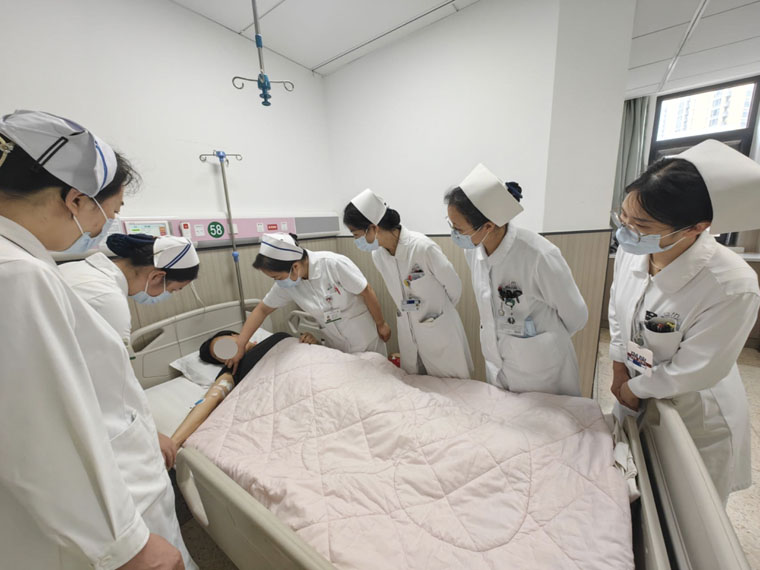 2023年,一名52歲的子宮內膜癌患者就診于我院,她體態肥胖、合并糖尿病,是典型的內膜癌高危體征。王建英副主任注意到患者情緒不穩定,與陪床女兒發生爭吵,不配合護士護理,治療過程不順利。王建英囑咐團隊人員,首先要理解患者的情緒狀態,注意詢問患者疾病之外的情況,多關心、多傾聽患者心聲,她的背后可能是一個糟糕的生活現狀。再次采集“病史”發現,患者和丈夫感情不睦,經常吵架,常年分居,而女兒剛剛生完孩子又恰巧離婚……