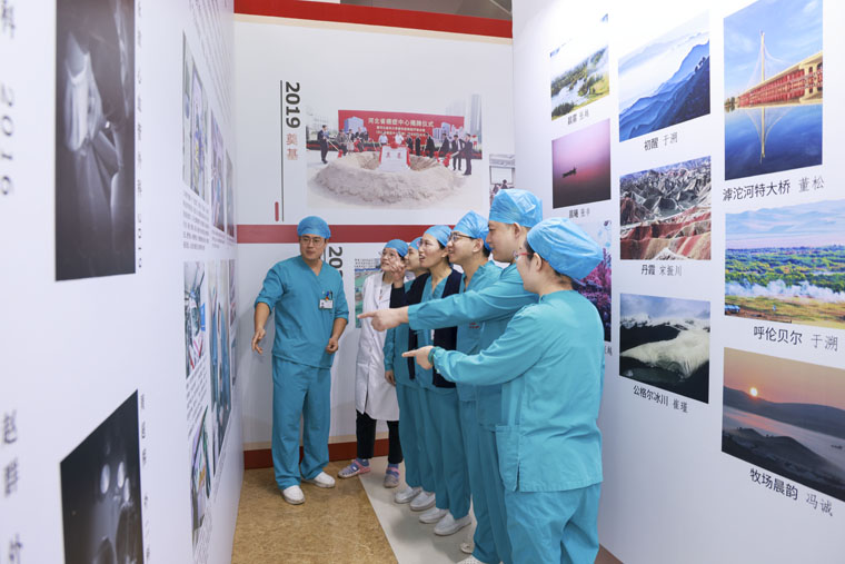 近日,我院在本部新醫技病房樓一樓大廳舉辦了“丹青翰墨 歲月芳華”主題展覽,內容包括職工書法及國畫作品、紀實及風光類攝影作品、醫院建設發展歷程及東院區醫療綜合樓建設歷程圖片展等,吸引了許多職工、患者及家屬的駐足欣賞、拍照打卡,收獲廣泛好評。此次展覽旨在進一步加強醫院文化建設,激發廣大職工團結向上、砥礪奮進的精神,也是慶祝河北醫科大學建校130周年系列活動及我院文化藝術節系列活動之一。