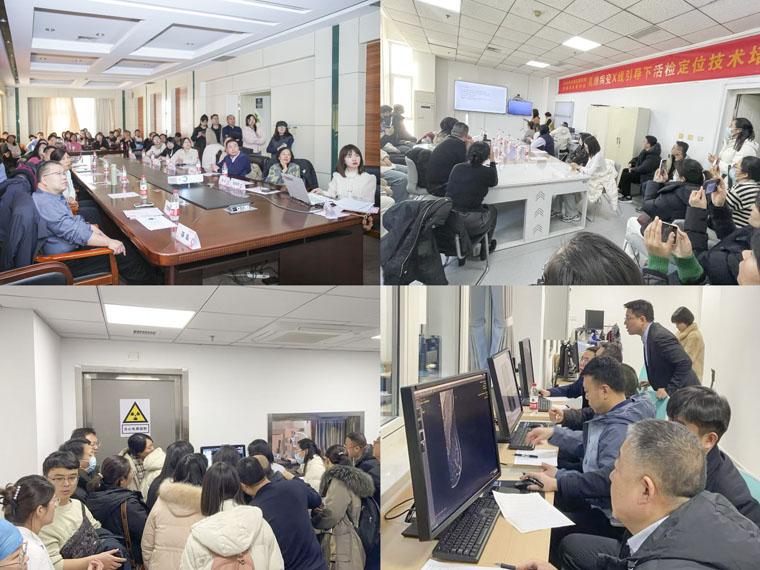 在乳腺病變X線引導下活檢定位技術培訓班分會場,我院放射科李亞男主治醫師、黃景香護士長,介入病房副護士長魏敬妙、夏青青技師,以“乳腺三維立體定位技術”“對比增強乳腺X線攝影中對比劑的應用”“對比增強乳腺X線攝影中留置針的使用要點”“乳腺病變活檢定位過程中設備操作要點”等主題進行深入交流。會后,與會同道來到我院東院區放射科乳腺攝影檢查室,現場觀摩了由放射科醫、技、護團體協作完成的X線引導下乳腺病變穿刺活檢定位演示和相關并發癥應急處理演練。