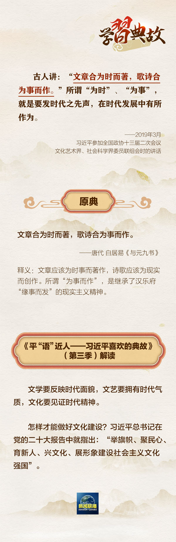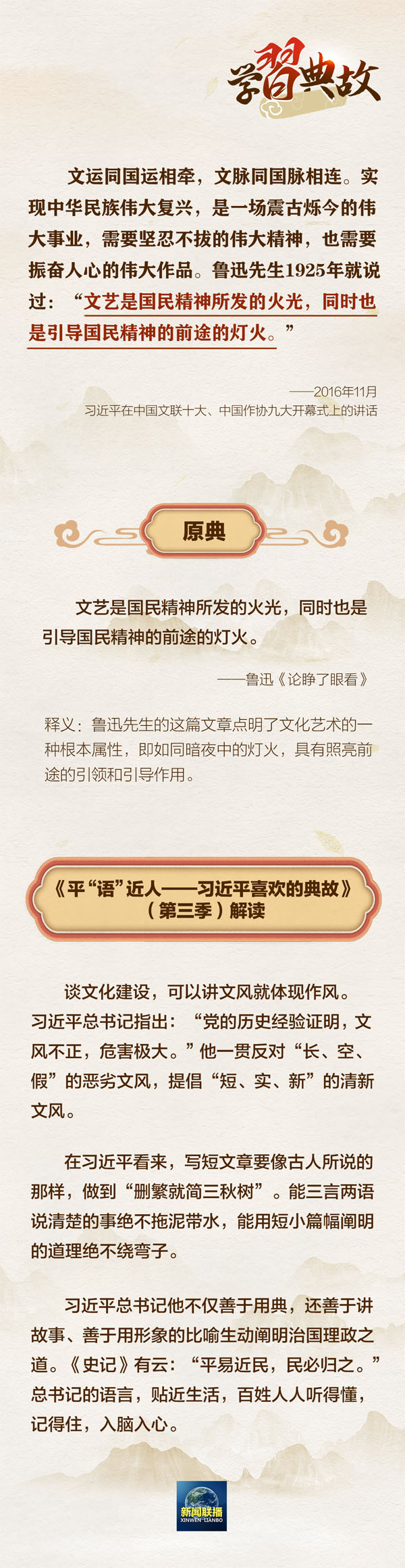 文運同國運相牽,文脈同國脈相連。文化自信是一個國家、一個民族發展中,最基本、最深沉、最持久的力量。黨的二十大報告中指出:“全面建設社會主義現代化國家,必須堅持中國特色社會主義文化發展道路。”圍繞“文化建設”這一主題,總書記曾講到哪些典故?一起學習↓↓↓