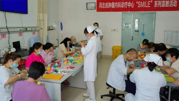 科室深入探索多種心理治療模式,成立了暖陽工作室,采用音樂、繪畫、手工制作等多種藝術形式進行干預治療,深化與患者及家屬的心理溝通,幫助患者在抗癌道路上獲得更多“溫暖陪伴”和“人文支持”,增強戰勝疾病的信心。不同模塊的宣教培訓每年有序進行,效果顯著,年受益者達萬人以上。