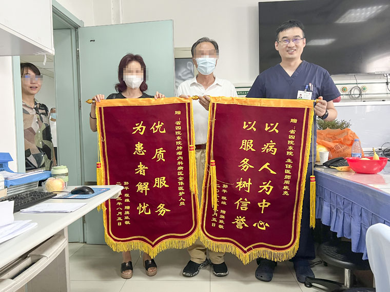 一幅幅感謝的字畫,一面面致謝的錦旗,不僅承載著患者沉甸甸的心意,更是對科室和醫院充分信任的象征,激勵著全體醫務人員持續提高醫療服務水平。腫瘤內科始終以守護患者的“身心健康”為初心和使命,將持續深耕“人文關懷”,以更有溫度、更高質量的服務,讓患者的康復更加溫暖有力。