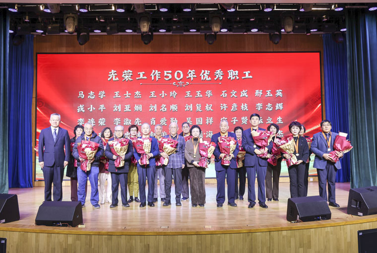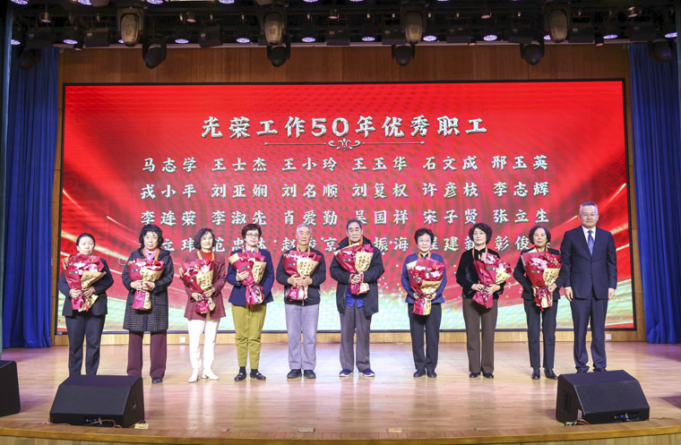 作為本次聯歡會的重要環節,醫院特別表彰了光榮在崗奉獻50年的老專家。李立平書記為每一位老教授佩戴紀念章,代表醫院送上誠摯的祝福。