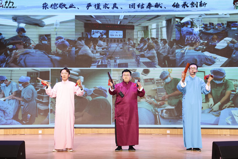 在新春佳節即將來臨之際,1月24日下午,我院在本部新醫技病房樓報告廳舉辦了2025年迎新春聯歡會。六個黨總支悉心籌備、傾情呈現,14個精彩節目交織成一場視聽盛宴,超200名職工熱情參與演出。全體院領導,離退休老領導、老前輩與廣大職工歡聚一堂,共迎蛇年新春。線上平臺同步進行直播,點擊量近40萬人次,收獲廣泛好評。
