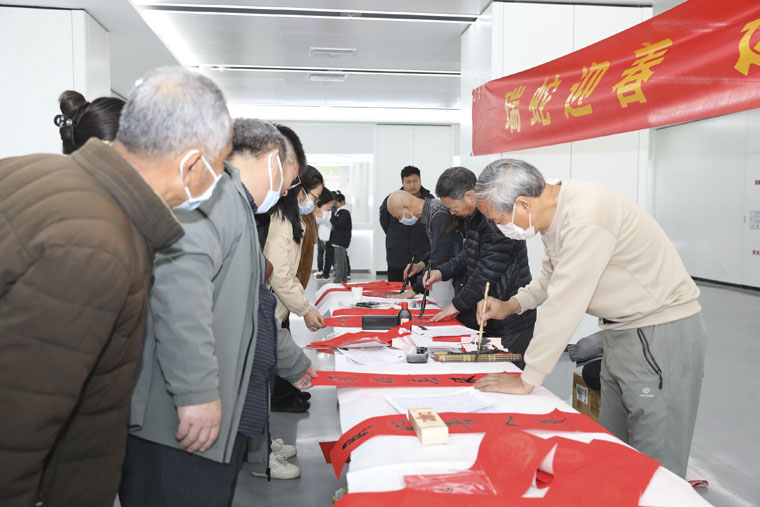 瑞龍辭舊歲,祥蛇躍新程,1月21-22日,為弘揚優秀傳統文化,營造歡樂喜慶的節日氛圍,在醫院黨委的大力支持下,我院書畫協會在兩院區舉辦了“瑞蛇迎春,送福萬家”迎新春送春聯活動。書法愛好者們現場揮毫潑墨,共書寫對聯800余幅,福字近900個,為患者、家屬和職工送上真摯地新春祝福,廣受好評。