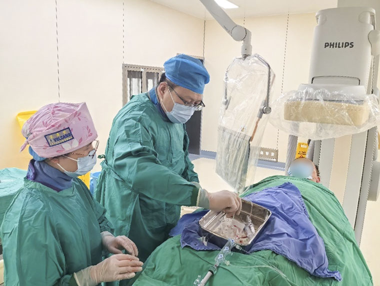 節日中,由于人們飲食、作息不規律等原因,容易誘發心絞痛、心肌梗死等心血管疾病,我院幾乎每日都會收到急需手術的患者。某日,馬景濤教授及張思潔副主任在東院區為一名肌鈣蛋白升高患者行冠脈造影及左室造影,手術還未結束,突然接到急診電話,一名54歲的中年男性因突發胸痛被送到急診科,檢查結果提示為急性心肌梗死。馬景濤教授立即啟動應急預案,要求團隊迅速做好術前準備,同時在妥善完成第一臺手術后,再赴導管室為患者進行冠脈造影檢查,結果顯示為三支病變。科室團隊憑借熟練細致的操作,經過兩個多小時的團結奮戰,在晚上10點多,為患者成功開通了兩路閉塞的血管,患者生命體征趨于平穩,轉危為安。夜間的急癥手術也不曾間斷,連日來,孫芳毅副主任、姚鐵柱副主任、劉光副主任醫師、劉宇副主任醫師等分別完成多臺冠脈介入手術,術后患者胸痛癥狀都得到有效緩解,平安出院。