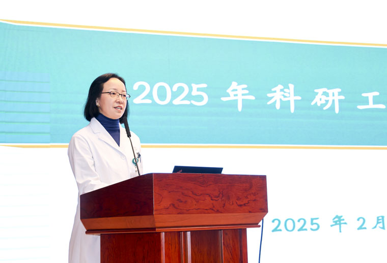 副院長田曉玲從“2020-2024年科研數據”“2025-2026科研目標責任書”“醫院國自然激勵政策”“多部門聯動下的科研工作規劃”等四個方面出發,對我院近年來科研工作的現狀進行了精確分析,對今年的科研目標責任書做了詳細講解,并全面解讀了醫院制定的科研激勵政策。她表示,醫院將加大人才“內培”和“外引”力度,通過創新人才引進機制、實施“接班人計劃”、構建靈活激勵體系、提升師資隊伍水平等方式,全面助力科研工作高質量發展,不斷提升我院的綜合競爭力。