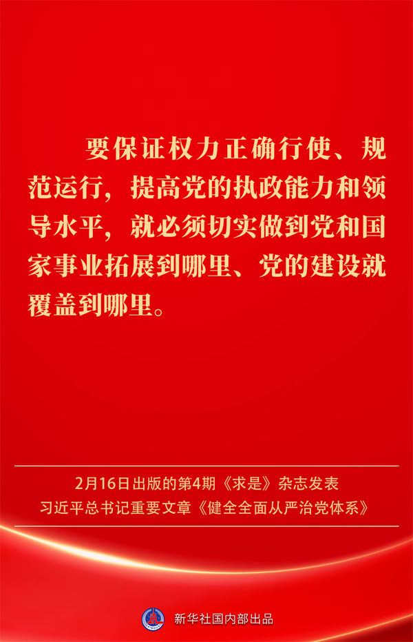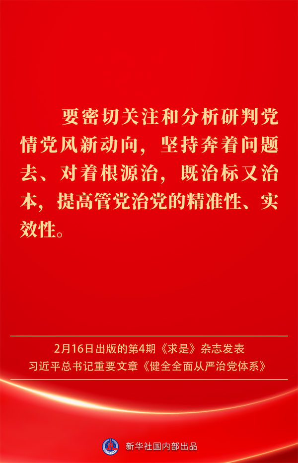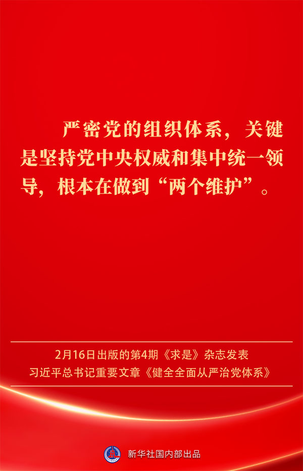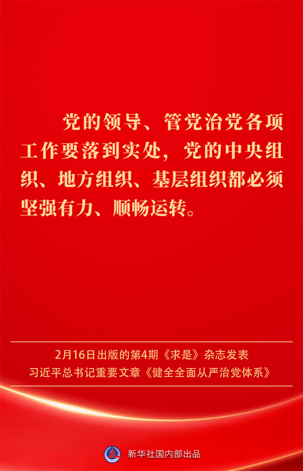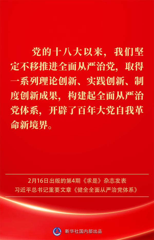 2月16日出版的第4期《求是》雜志發表習近平總書記重要文章《健全全面從嚴治黨體系》。如何進一步健全要素齊全、功能完備、科學規范、運行高效的全面從嚴治黨體系?習近平總書記闡明要旨——