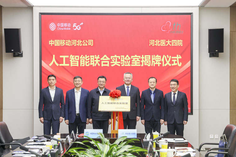 隨后,常務副院長何宏濤與河北移動黨委副書記劉克飛代表雙方簽署協議,副院長趙群與副總經理楊朝暉為人工智能聯合實驗室進行揭牌,?聯合實驗室的成立將進一步推動技術創新與臨床需求的精準對接,加速科研成果轉化落地。?