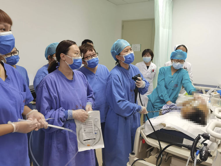 急診內鏡往往都是一些緊急的病情,消化道大出血最為常見,耽誤一分,患者很可能就會有十分的生命危險。食管異物也是常見的急癥之一,如誤食魚刺、棗核、骨頭、假牙等,取異物風險很大,很可能造成血管的大出血。每一次搶救都是與死神在拉扯,值得欣慰的是,我們常常是獲勝的一方,有時一干就到了深夜,醫院就是家,倒頭就睡,第二天繼續投入到診療工作中。