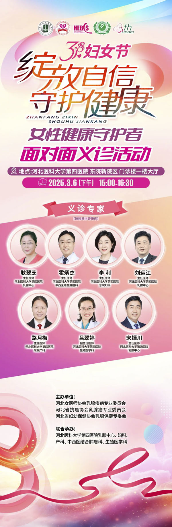 值此“三八”國際婦女節到來之際,?3月6日下午,我院東院區將開展“女性健康守護者”面對面義診活動,乳腺外科、東院婦科、東院產科、中西醫結合腫瘤科及生殖醫學科等多學科醫學專家攜手組建了專業的醫療團隊?。屆時,他們將為廣大女性提供?全面、細致且專業化的公益健康咨詢服務?,旨在?普及科學健康知識,增強女性健康意識?,切實為女性朋友帶來溫暖與關懷?。