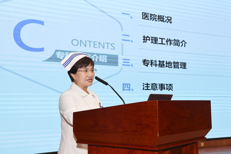 李來有主任詳細介紹了醫院概況及護理管理亮點,分享了質量安全體系建設、學科發展創新、人才培養機制,展示了我院專科基地建設和管理中的經驗做法。她強調,帶教老師要以高標準、嚴要求確保實踐質量,實現教學相長。歡迎儀式后,學員按專科分組進入臨床基地,其中本部院區承接93人,東院區29人。