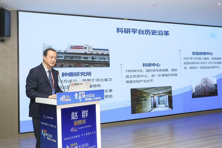 副院長趙群介紹了醫院科研共享平臺。他表示,河北省腫瘤研究所設于院內,醫院擁有國內先進的科研中心、實驗動物中心,9個省級重點實驗室,3個省級臨床研究中心,以及國際科技合作基地等。平臺匯聚大量科研人才,承擔眾多科研課題,成果顯著。希望青年博士借助這些優勢資源,在科研道路上取得更多創新成果。