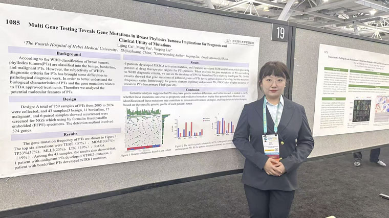 在發言環節,病理科丁妍副主任和李金澤醫生代表科室參會,她們以嚴謹的研究方法、詳實的數據和清晰的思路向全球同行展示了乳腺病理最新研究成果,現場專家表達了濃厚興趣,引發了熱烈討論和交流。在壁報展示區中,病理科的5篇壁報涵蓋了腫瘤病理、分子病理、人工智能輔助病理診斷等多個領域,吸引了眾多參會者的駐足討論,展示了科室在病理學研究方面的多元化和創新性,獲得了現場專家的高度認可。