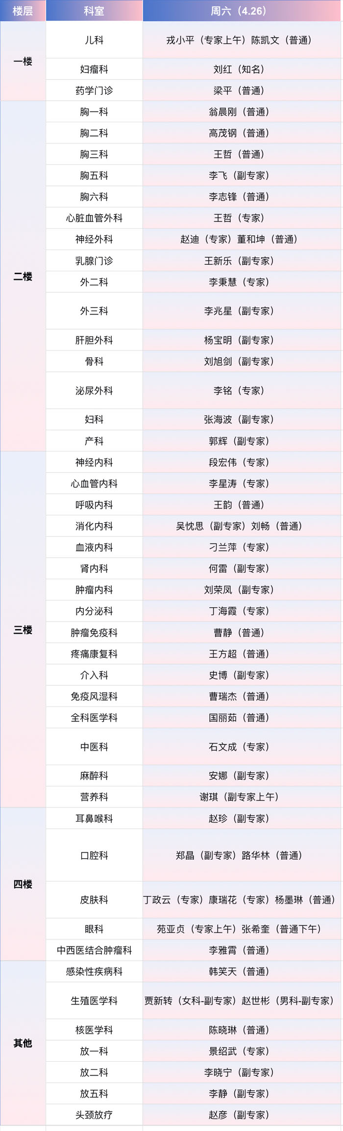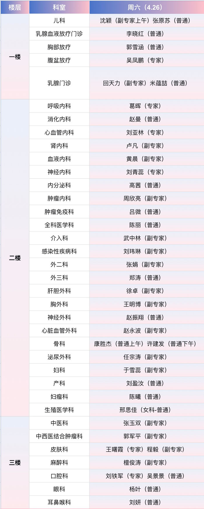 注:具體以實際出診為準。