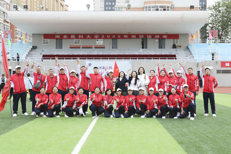 4月25-26日,河北醫科大學舉辦了2025年度教職工和學生田徑運動會,8支醫院代表隊和17支學生代表隊參賽。我院代表隊由黨委副書記、紀委書記李曉玲帶隊,80名職工組成方陣亮相入場式,并參加了包括青年、中年和老年組跑、跳、接力、鉛球等項目的比賽,大家頑強拼搏、奮勇爭先、最終以優異表現斬獲職工組團體總分第三名。