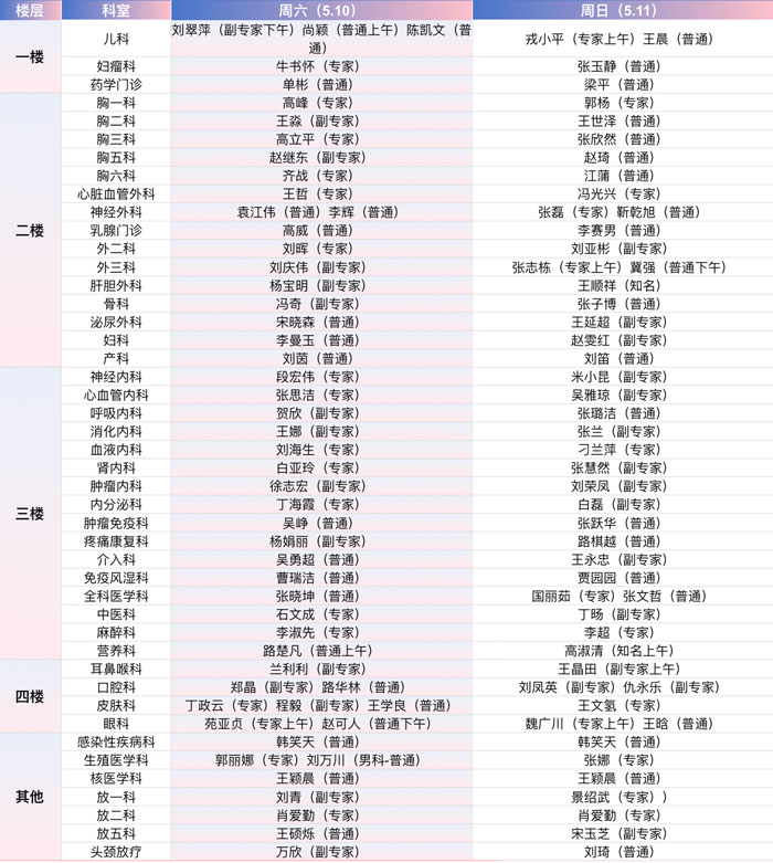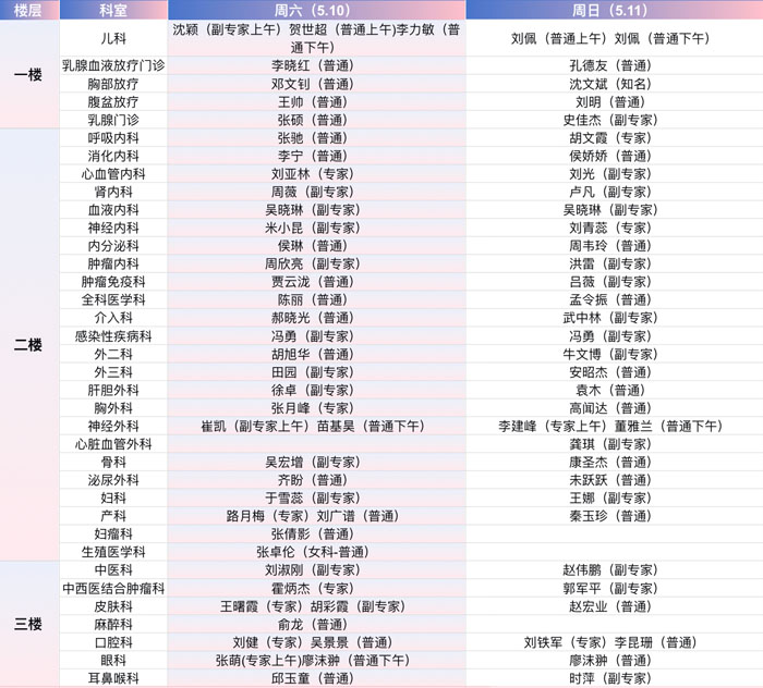 注:具體以實際出診為準。
