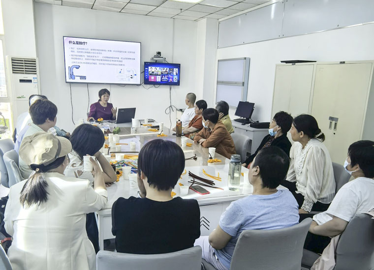 科室主任劉志坤以《腫瘤放療不良反應與應對》為題,針對放療常見的皮膚反應、化療引起的惡心嘔吐等副作用,提出個性化應對方案。他演示了放療區域皮膚護理技巧,叮囑患者通過冷敷、藥物外涂等方式緩解不適。“治療的過程會有挑戰,但我們有方法應對!”