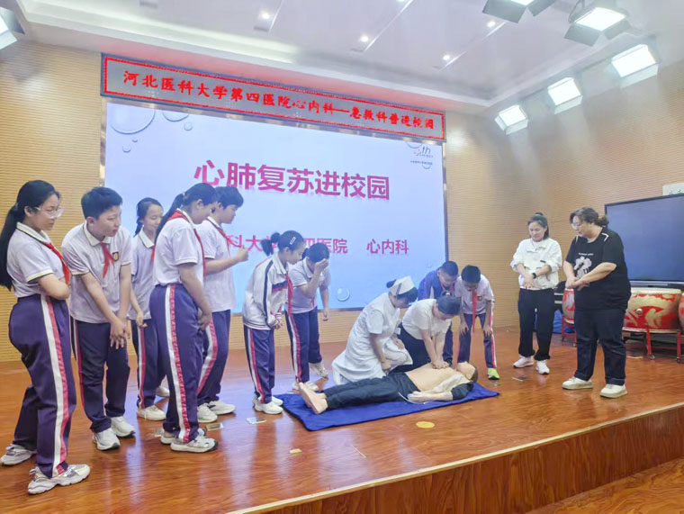 活動現場,科普團隊圍繞“心臟驟停”這一關鍵主題,通過通俗易懂的科普講座,向師生詳細講解心臟驟停的黃金救援時間、心肺復蘇(CPR)操作原理及自動體外除顫儀(AED)的使用方法。同時,針對“判斷意識—呼救—胸外按壓—人工呼吸—AED除顫”全流程操作要點進行深入解讀,并借助互動問答、視頻演示等多元化形式,充分調動學生參與熱情,讓急救知識深入人心。