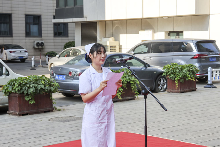畢業生代表段晨同學回顧了大學4年學習、實習和生活的點滴,分享成長感悟,并代表全體畢業生向河北醫科大學和四院的老師們表示衷心感謝。她表示,全體畢業生將銘記校訓院訓,傳承南丁格爾精神,守護人民健康,用奮斗書寫新時代護理人的精彩篇章。
