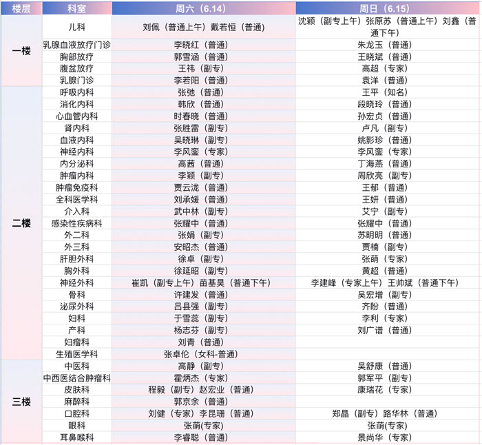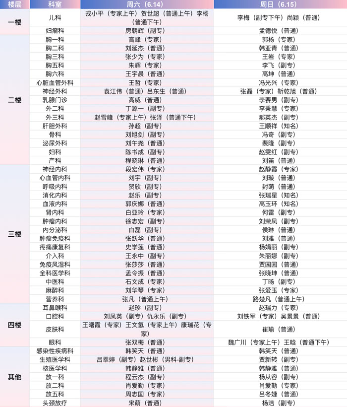 注:具體以實際出診為準。