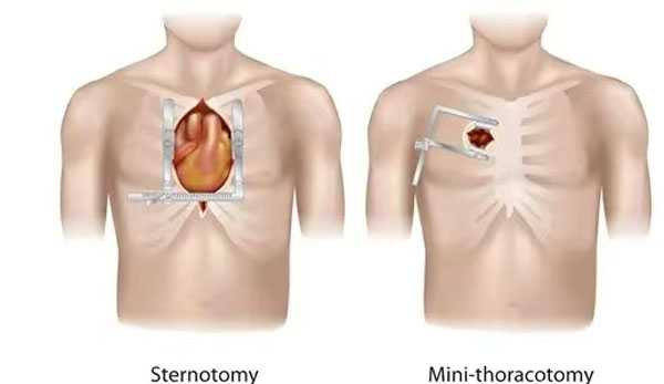 傳統瓣膜替換手術需縱劈胸骨,手術切口長達20cm,術后需用鋼絲固定胸骨且終身留存,給患者帶來較大創傷。而我院采用的肋間小切口微創技術優勢顯著:僅5-6cm的切口,避免了胸骨被鋸開,患者術后可快速恢復正常活動,疼痛程度輕、康復周期短。術中,團隊精準操作,在胸骨旁第三肋間約5cm微創切口下順利完成二尖瓣生物瓣+主動脈瓣生物瓣的替換,大大減少了創傷。