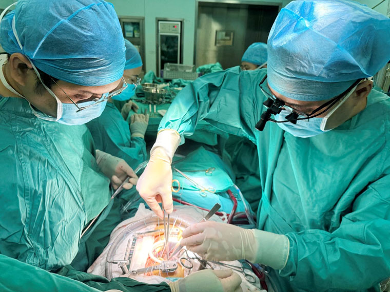 同時,科室近期又為另一位患者完成了微創雙瓣膜置換術。患者為一名66歲男性,患有嚴重心臟瓣膜病,約6個月前活動后出現胸悶氣短,未予重視,3個月前癥狀加重,輕微活動便出現氣促、胸悶,嚴重影響生活。經當地醫院心臟超聲診斷,為二尖瓣脫垂伴重度關閉不全、主動脈瓣重度關閉不全,后輾轉北京多家醫院,均被告知需行開胸手術。在得知我院可通過微創技術治療重癥心臟瓣膜病后,患者一家帶著希望來到我院心臟血管外科就診。住院期間,科室團隊對患者的身體狀況展開全面、細致的評估。經檢查顯示,患者存在急性心力衰竭,同時發現患者實驗室檢查血型為O型,RhD(-),屬于罕見的熊貓血型。面對復雜病情,團隊成員立即進行深入研究。“考慮到患者病情危重,且血型罕見,為減小創傷,盡量減少術中失血量,我們決定在其胸骨旁肋間切開一個僅5cm的小口,在胸腔鏡輔助下通過微創技術進行二尖瓣+主動脈瓣的雙瓣替換術(生物瓣)。”科室負責人趙永波表示。